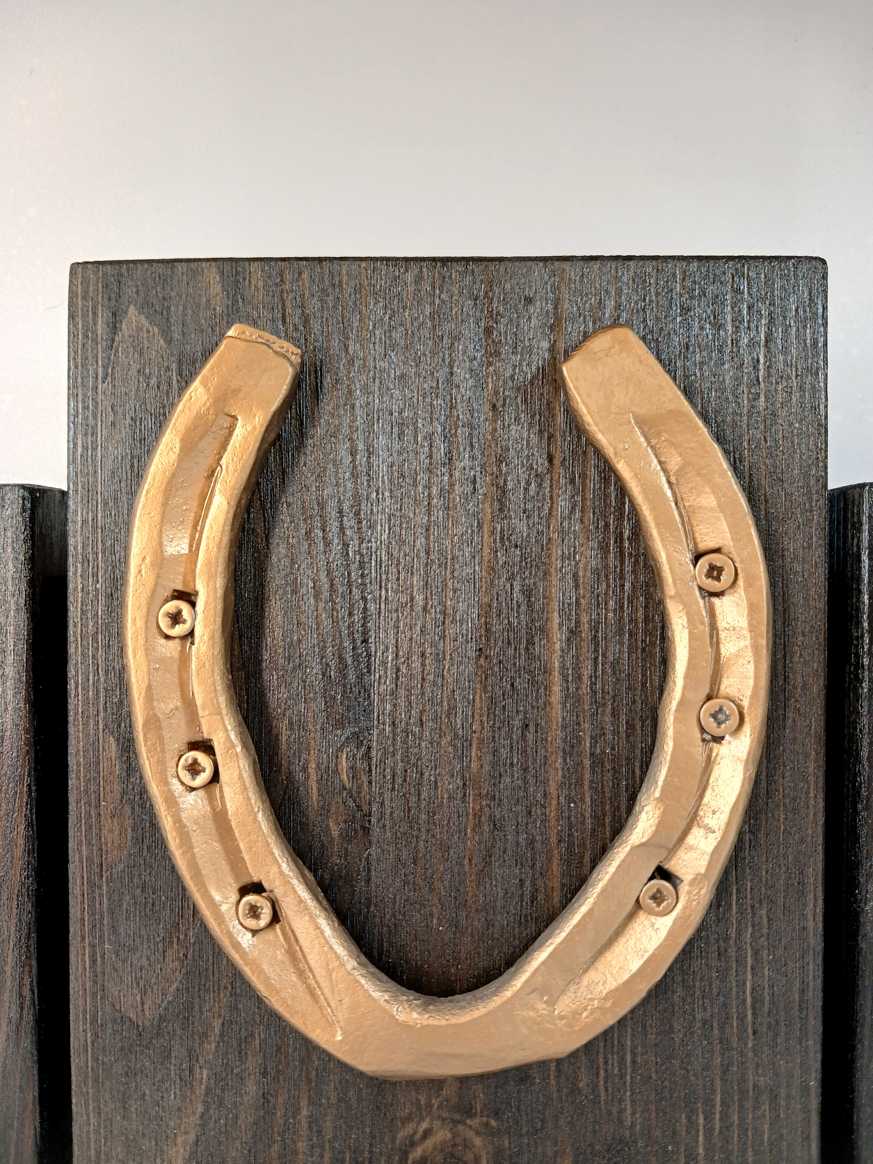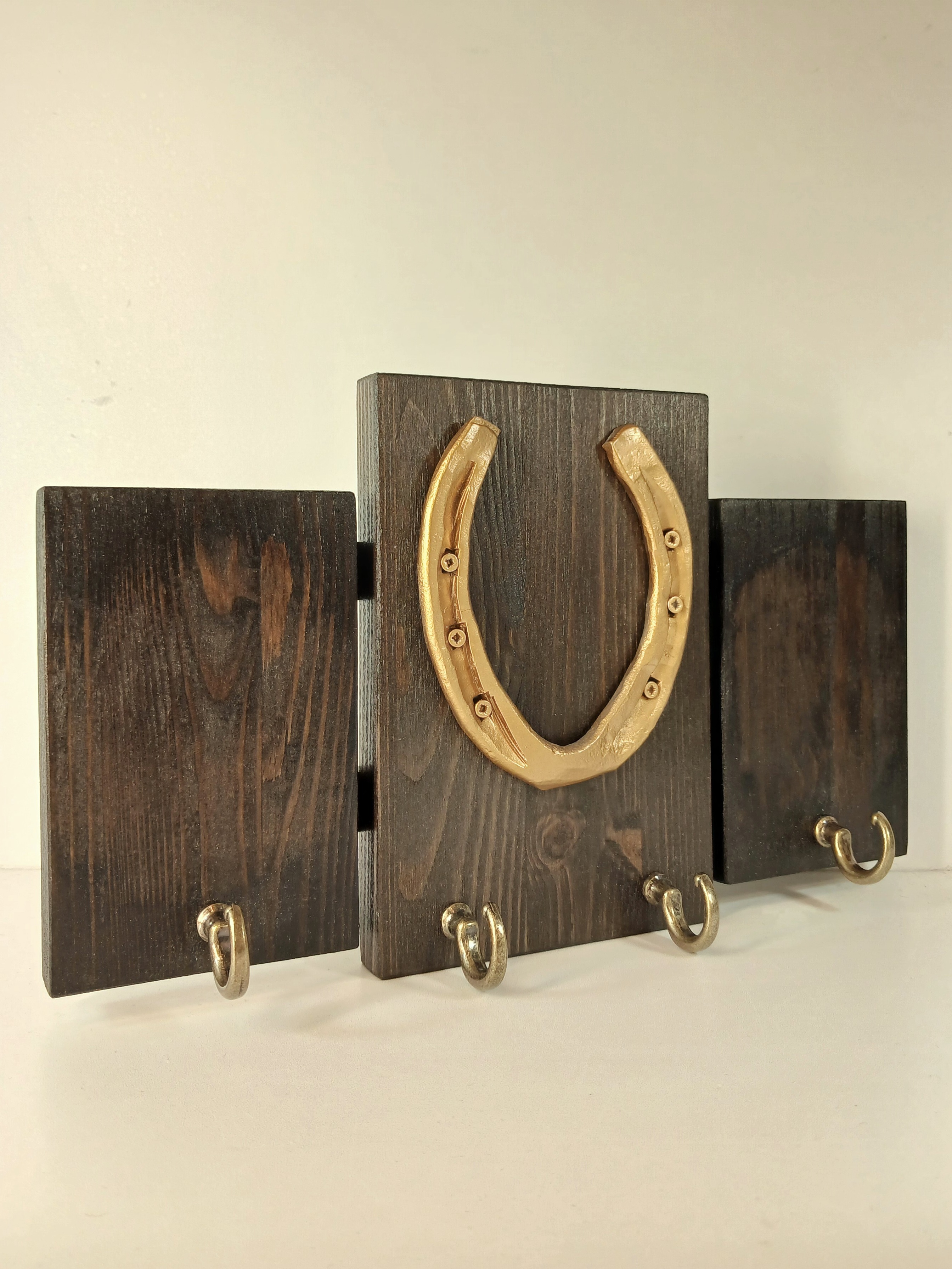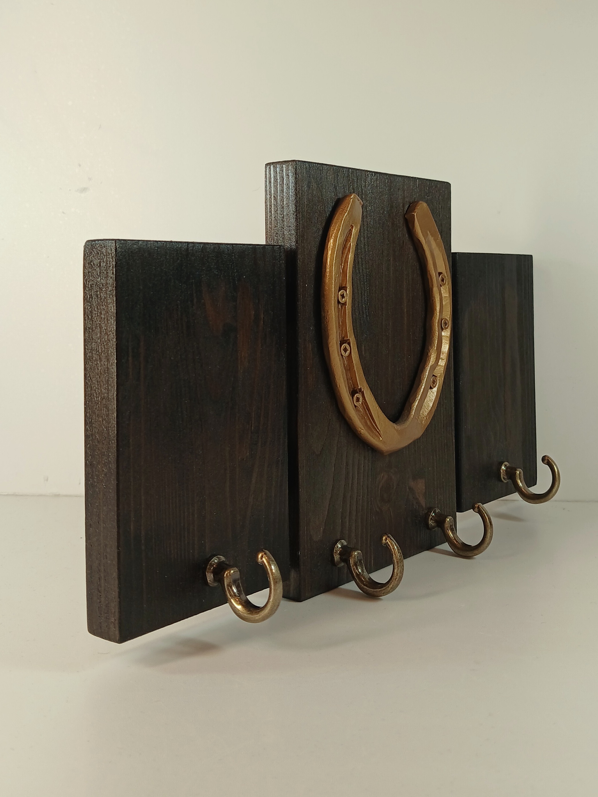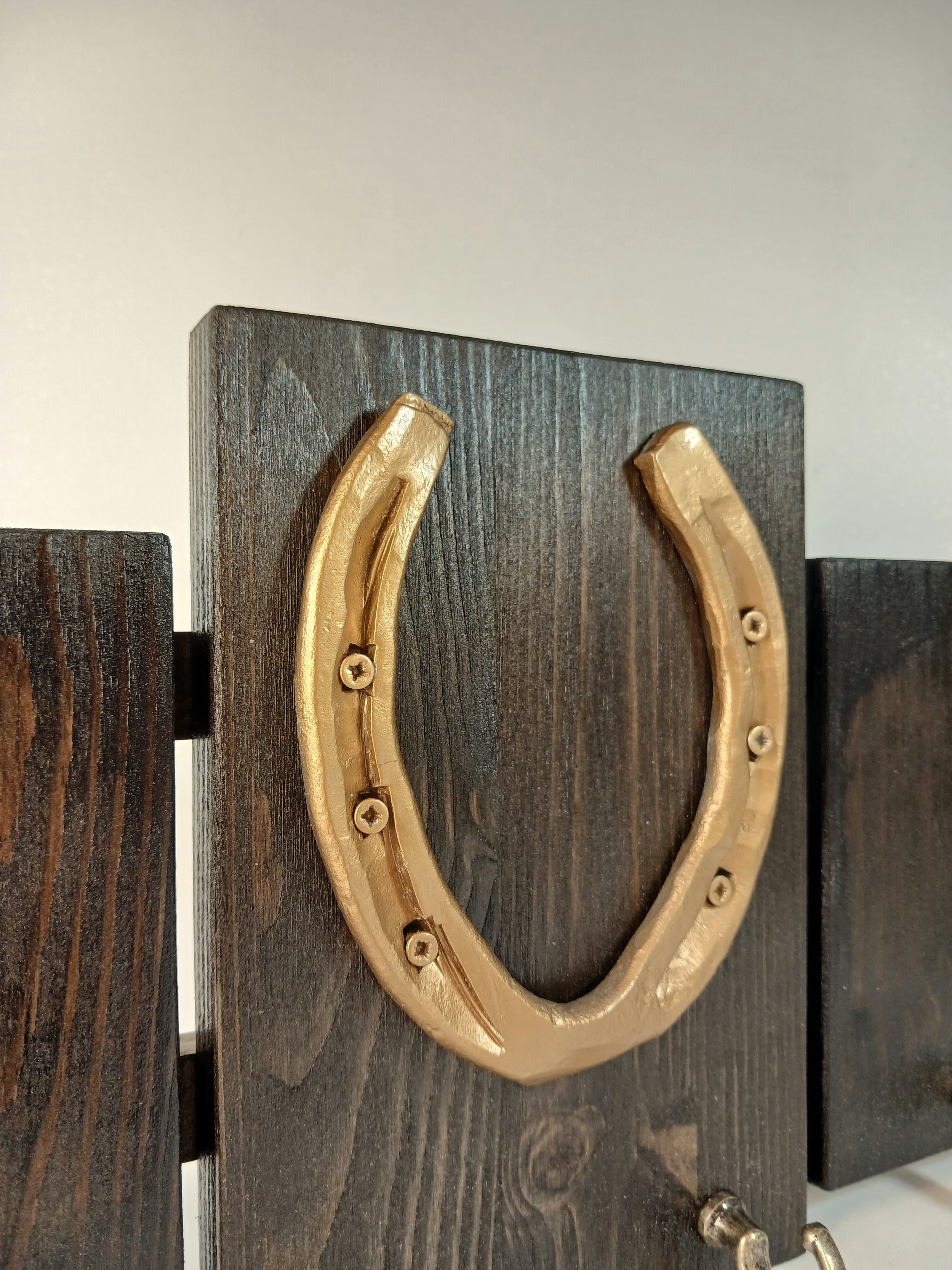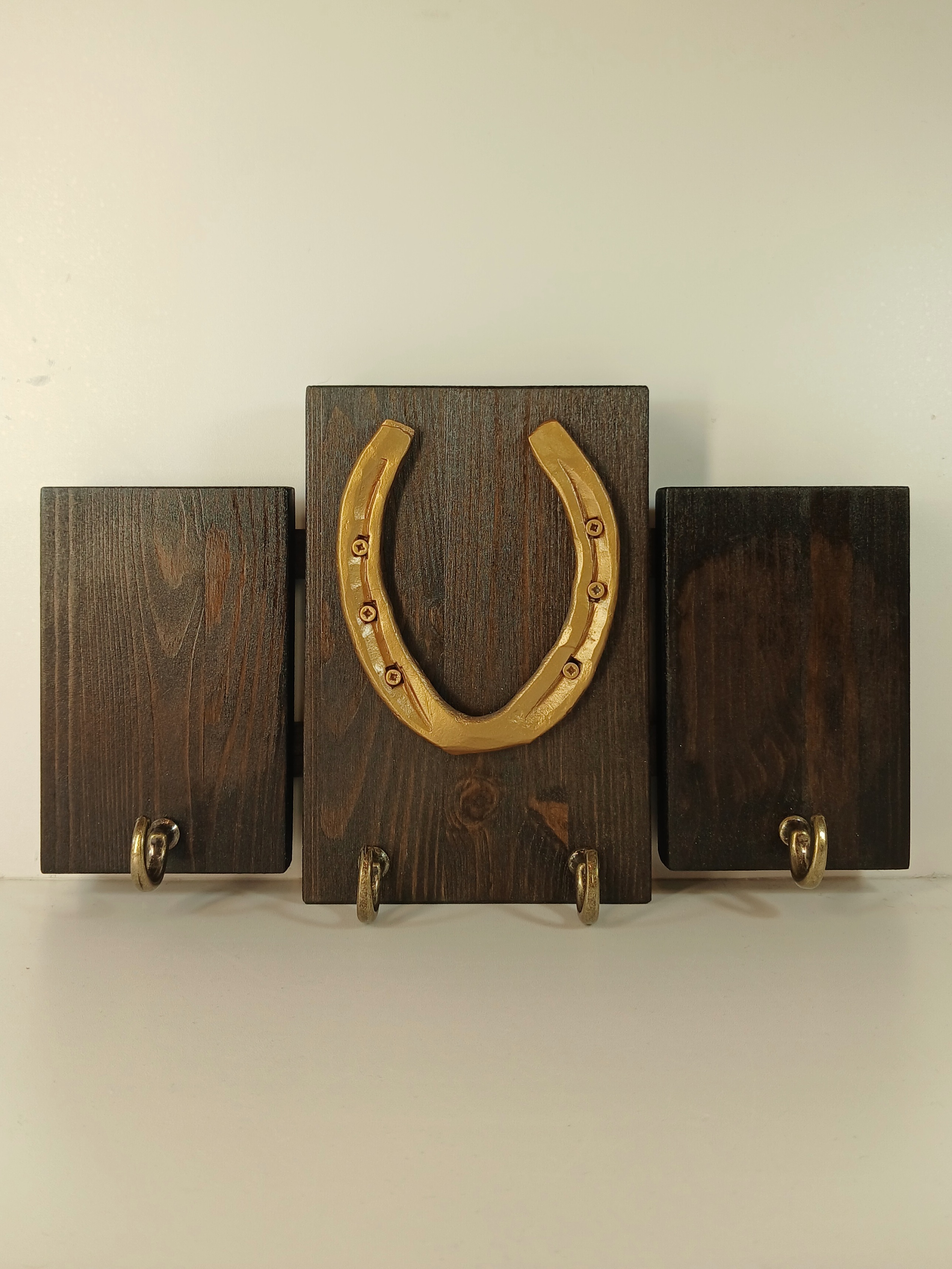 Материал: сосна, металлическая подкова. Покрытие: морилка, лак.